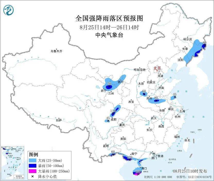 今天10时,中央气象台继续发布暴雨蓝色预警:预计25日14时至26日14时——